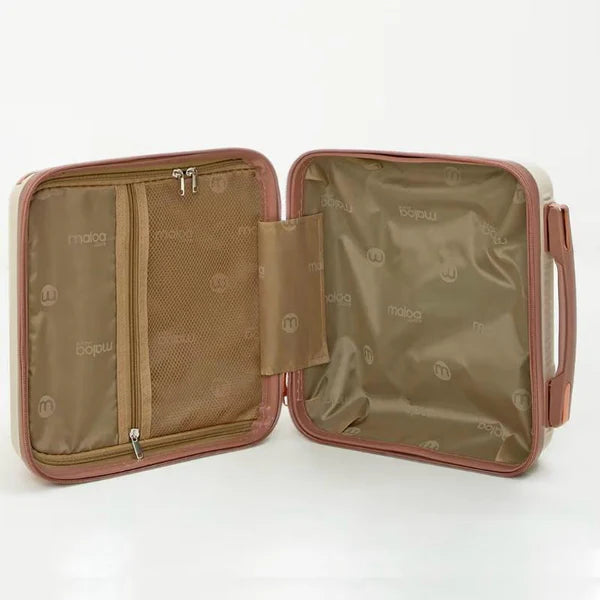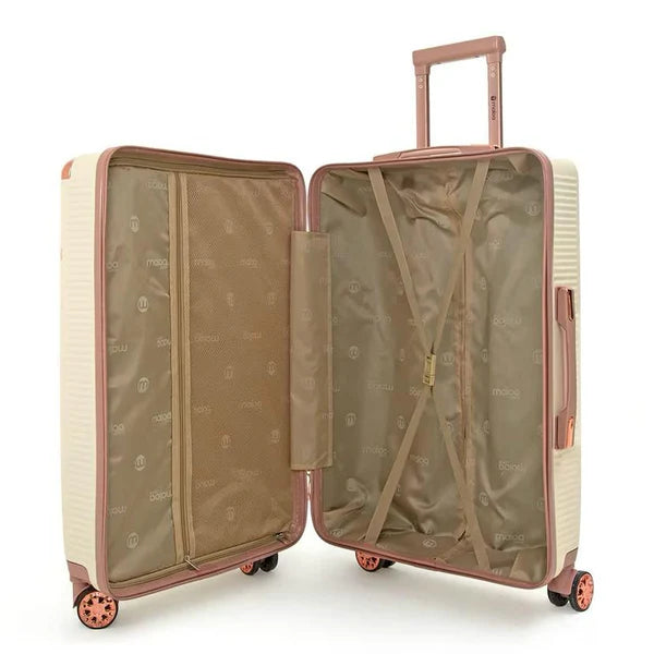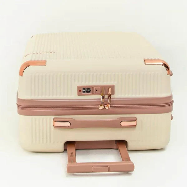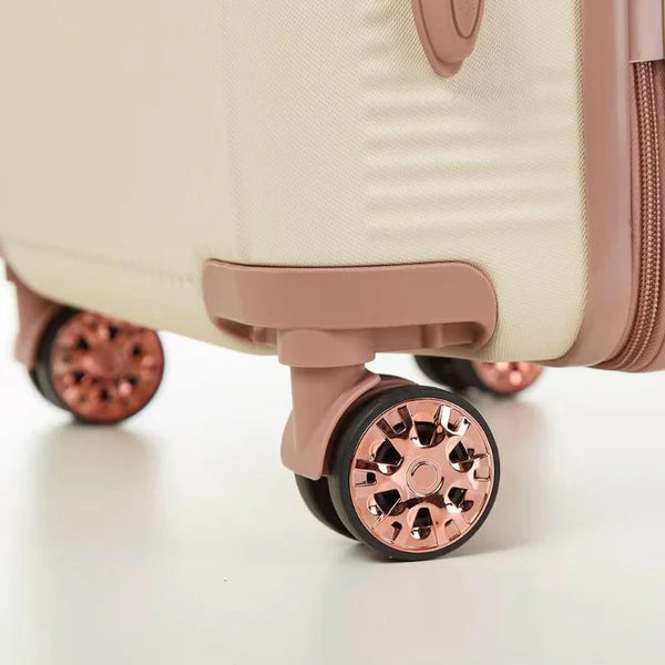 Fabricada em ABS ultrarresistente e leve, ela garante mobilidade suave graças às rodinhas 360°, além de proteção reforçada com o cadeado TSA integrado.