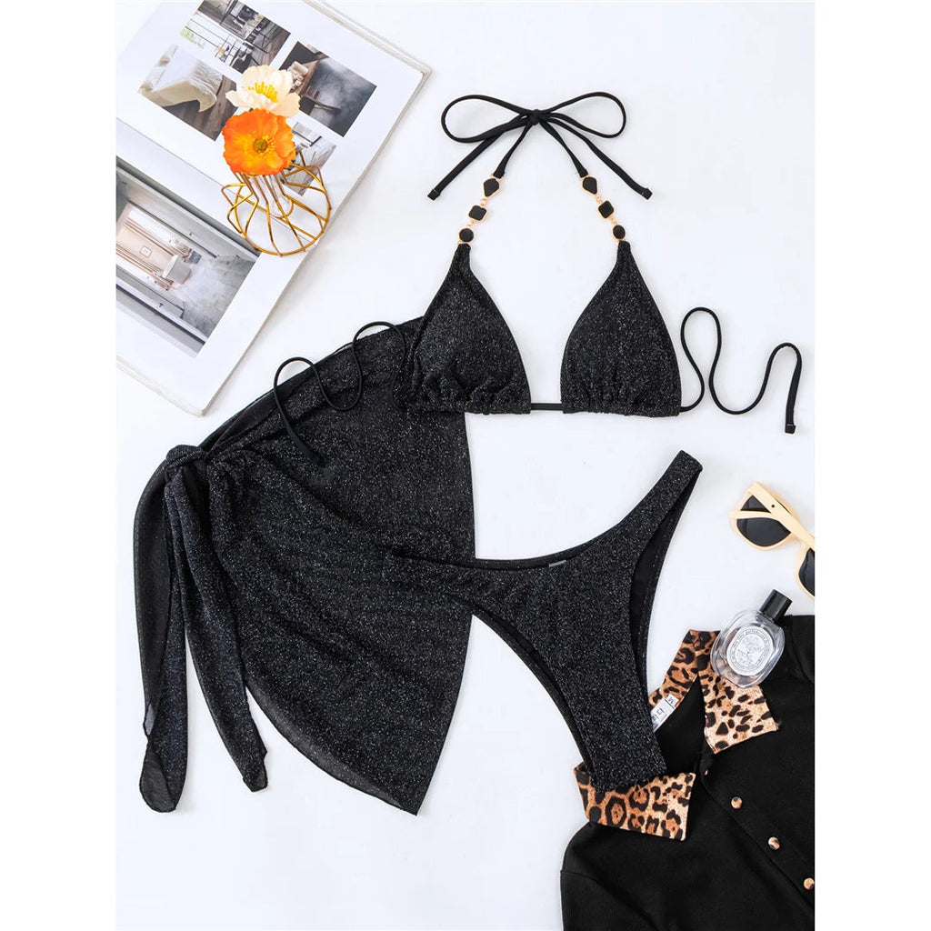 Biquíni Brilhante Praia da Azedinha - Conjunto 3 Peças , uma seleção que irradia glamour e frescor, inspirada na beleza única das praias mais exóticas. Este conjunto é ideal para a mulher que deseja unir estilo e características . Composto por um biquíni deslumbrante, uma saída de praia leve e um acessório coordenado, oferece diversas opções para looks de verão. Fabricado com tecidos de alta qualidade, proporciona um toque suave e um ajuste perfeito, garantindo conforto em cada momento. Os detalhes cintilantes e os núcleos vibrantes realçam a beleza e a confiança de quem o veste. O Biquíni Brilhante Praia da Azedinha é a escolha perfeita para quem quer se destacar com personalidade e charme à beira-mar.