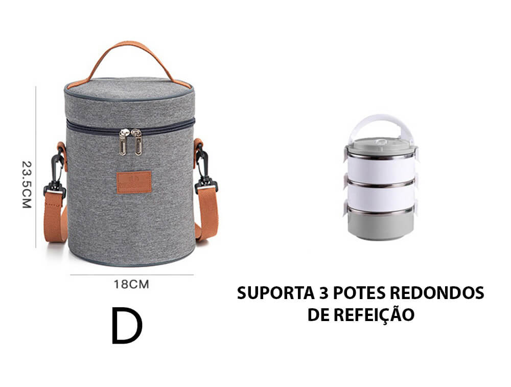 Todos os modelos acompanham alça e zíper. Conserva o seu alimento gelado por até 5-6 horas e quente por até 3-4 horas. Vários modelos disponíveis.