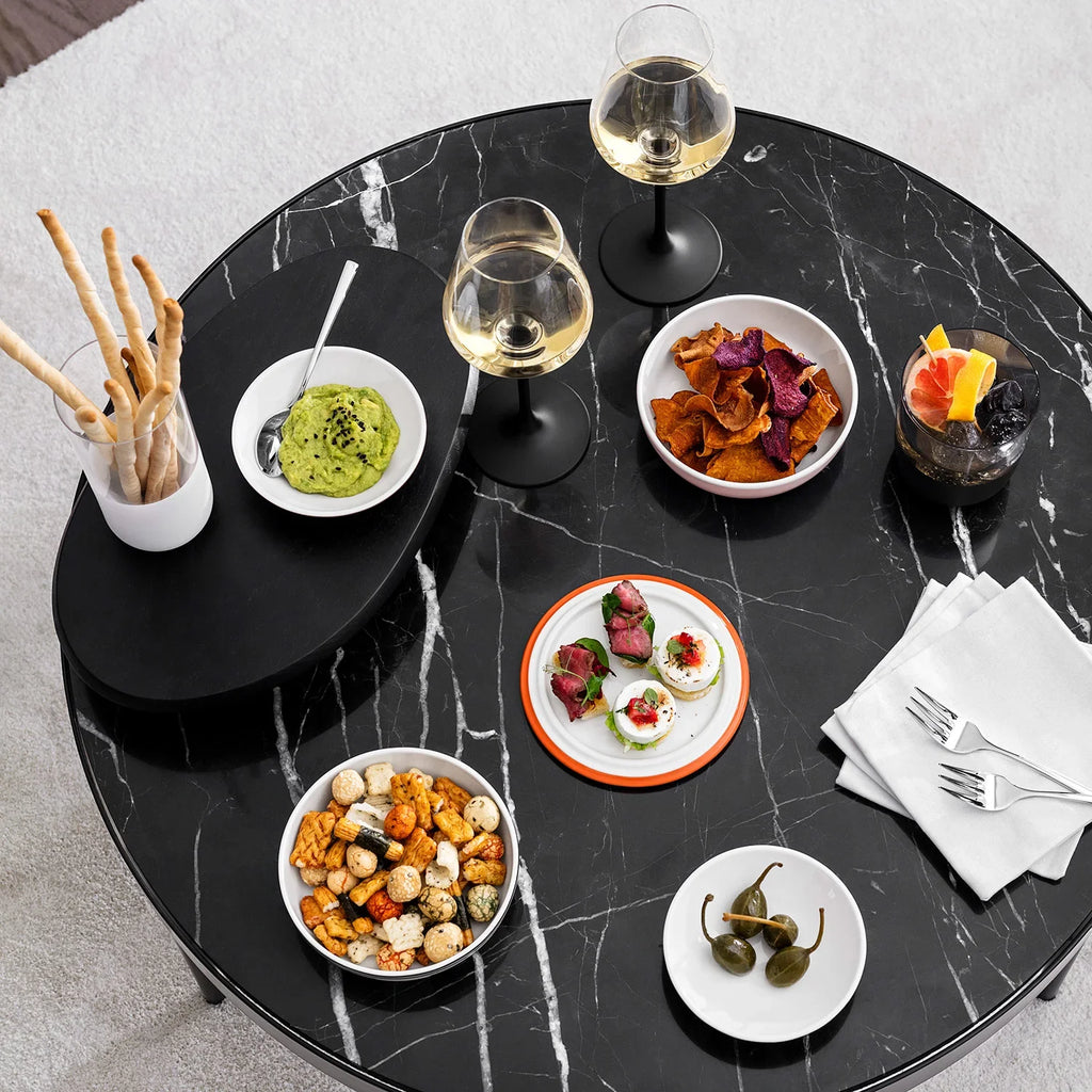 A esfera La Boule é um conjunto de artigos de porcelana de qualidade premium concebidos para duas pessoas. Dois pratos planos, dois pratos universais, duas saladeiras e uma travessa se conectam magicamente e aparecem na forma de uma bola.