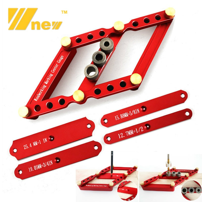 O localizador do perfurador da marcenaria fornece a versão melhorada vem com buchas de 6mm, de 8mm e de 10mm e de 1mm e de 2mm que marcam o furo para fazer tamanhos diferentes dos furos.