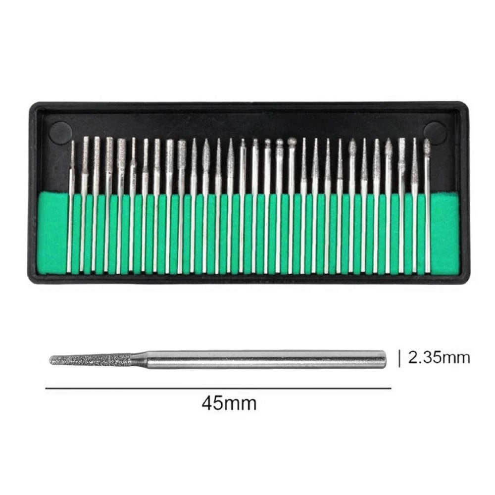 Ela vem em uma caixa com 30 brocas diferentes para diferentes usos. Adequado para ser usado com brocas manuais, eixos flexíveis.
