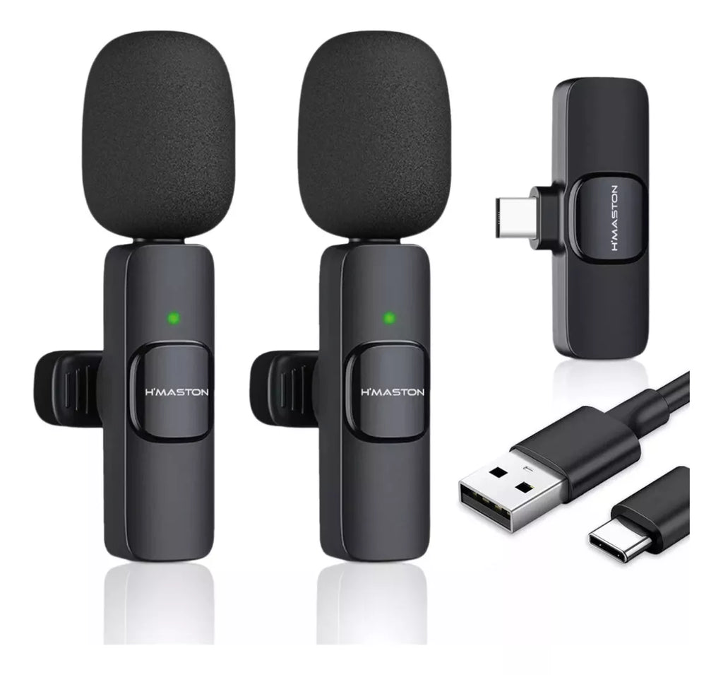 Microfone Sem Fio Duplo Lapela Profissional Tipo-C Android + iPhone Lightning