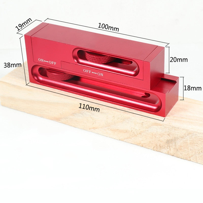 Ao usar uma extremidade para medir, a outra extremidade também é o mesmo valor. Primeiro use o ajustador para simplesmente medir a espessura do objeto e depois bloqueá-lo, em seguida, virar o ajustador para obter a largura do sulco, e você pode calibrar uma ferramenta de corte específica ao mesmo tempo a costura de corte.
