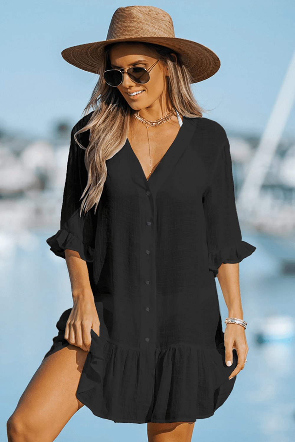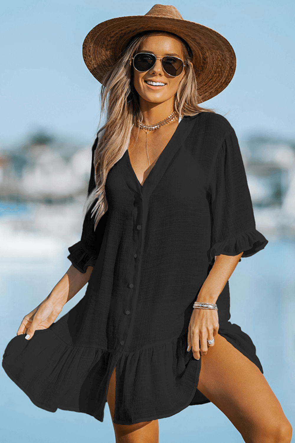Nossa Saída de Praia Camurupim possui tecido leve e soltinha no corpo é uma peça perfeita para aproveitar os dias ensolarados à beira-mar com conforto e estilo. Nossa saída é uma opção versátil e prática.