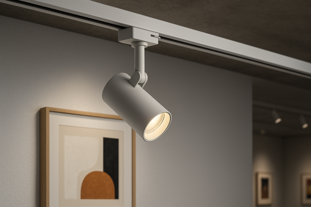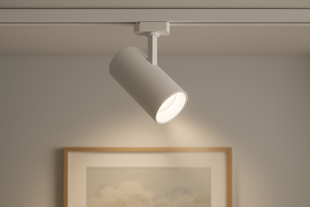 Spot LED direcionável para trilho que permite focar a luz exatamente onde precisa. Ideal para destacar quadros, objetos decorativos e criar pontos de luz estratégicos.